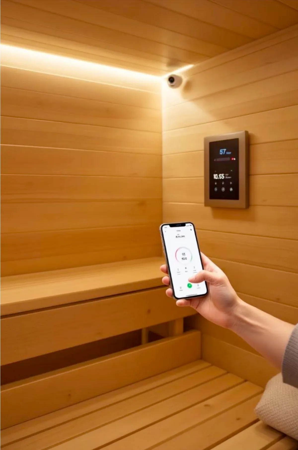 伝統的な薪サウナと最新のインテリジェントセキュリティシステム